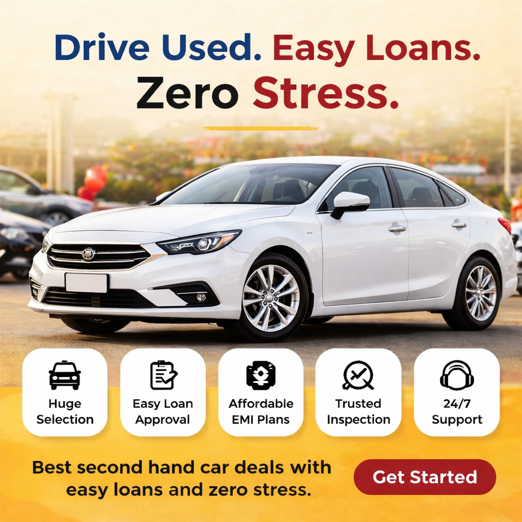 Get verified second hand cars with easy used car loans and new car loans. Fast approval, zero hidden charges, full RC transfer support